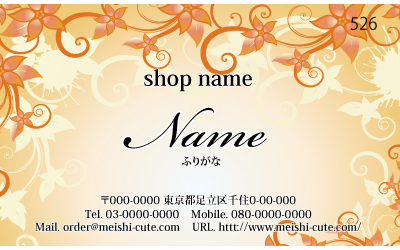 526 名刺 シンプル・ナチュラル系 オレンジ系(1箱100枚入)